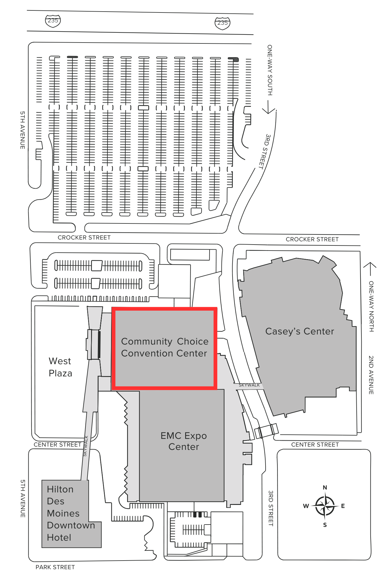 - If arriving at the Iowa Events Community Choice Credit Union Convention Center by driving, please park in the north parking lot on Crocker and 5th Street.