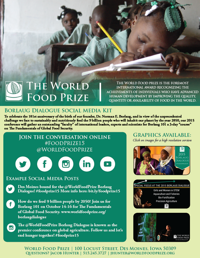 QUESTIONS: Jacob Hunter | Social Media Director | 515-245-3727 | jhunter@worldfoodprize.org